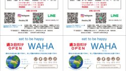 印刷用データ(Adobe Illustrator対象) 最近のこと17 WAHA(ワーハ)さん 配布チラシはがきサイズ 4丁づけ(コピー用版下)"WAHA"とは、アラビア語でオアシスの意味。「心・体・地球を潤すフード作り」をコンセプトに運営しています。食材は全て植物性素材のみで作られており、化学調味料無添加・グ... 2024.06.16 印刷用データ(Adobe Illustrator対象)新着情報